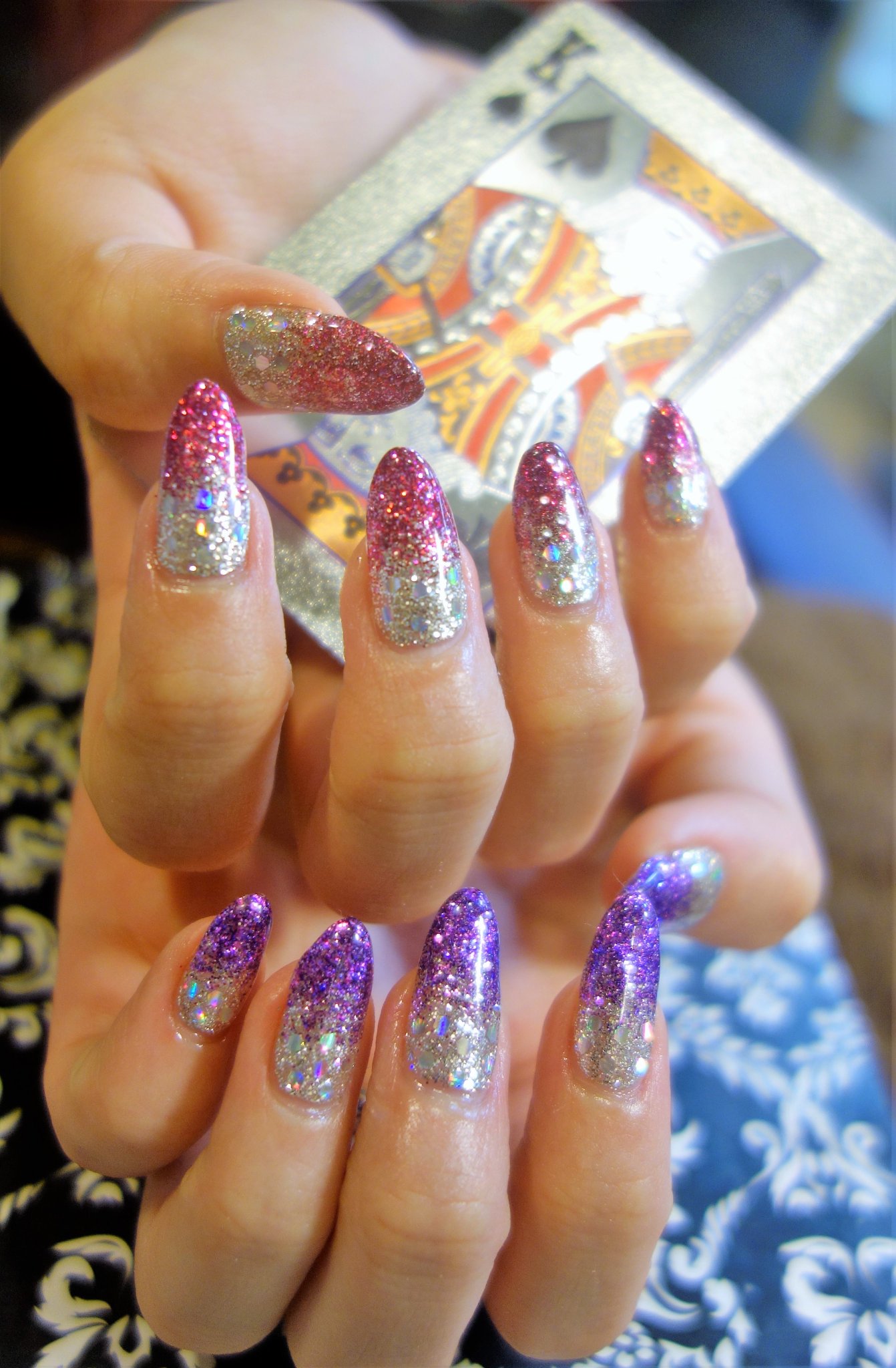 シャンテグラム ネイル紹介 ラメグラデーションネイル シルバーからピンクと紫にキラキラ輝くネイルにさせて頂きました プリズムシルバーのホロも入れて シンプルなデザインですが存在感のあるネイルです ネイルブログ T Co